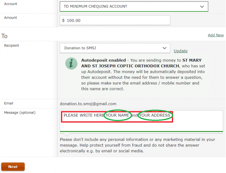 NOTE : Please make sure to include your full name and address with postal code in the Message (optional) text box